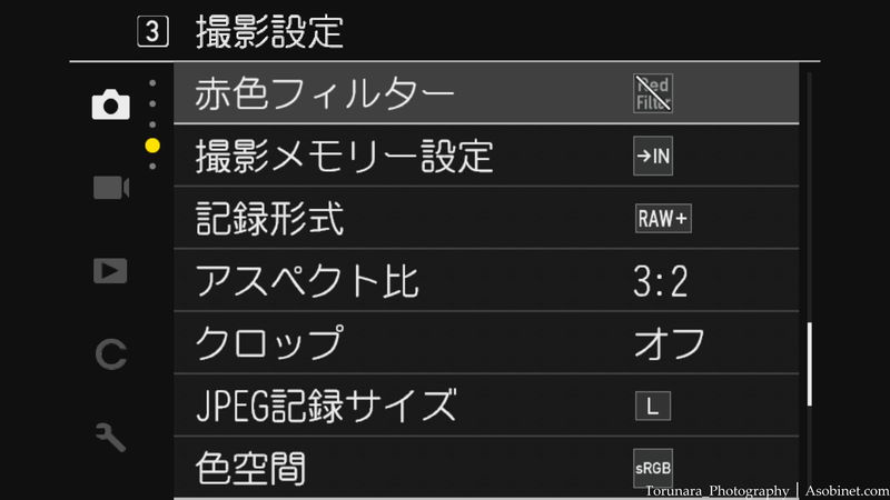GR IVと比べて「赤色フィルター」が追加され、「ホワイトバランス」はありません。