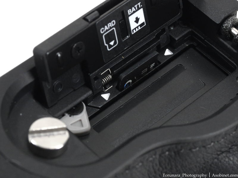 底部にはシリアルナンバーが記載されたシールが張り付けられています。三脚ネジ穴は光軸上から外れていますが、カメラの携帯性と機能性を考慮すると許容範囲内。とはいえ、バッテリー兼SDカードスロットがすぐ隣に配置され、干渉しやすいのはマイナスポイント。