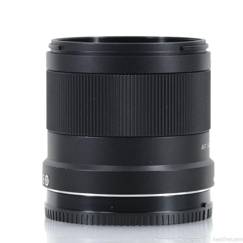 レンズの外装は全体的にプラスチックを使用。ただし、サムヤンTinyシリーズやYONGNUOの古い製品のような安っぽさはなく、日本メーカーのしっかりとしたプラスチック外装に似ています。価格を考慮すると悪い印象はありません。マットブラックの塗装で光沢が少なく、安っぽいプラスチッキーな質感が抑えられています。