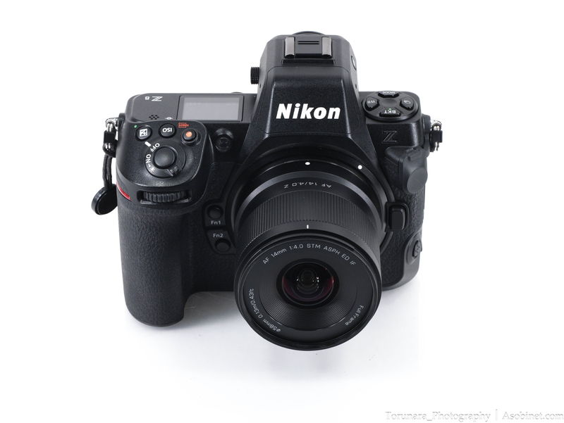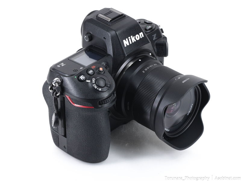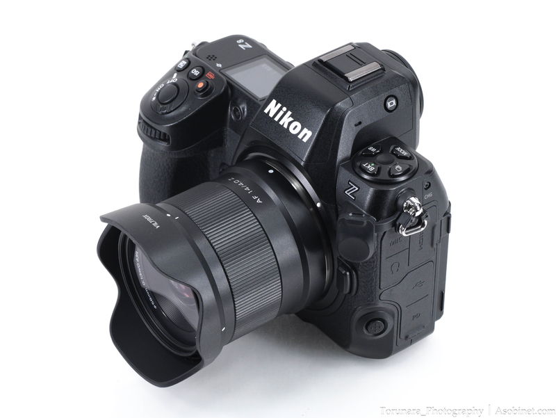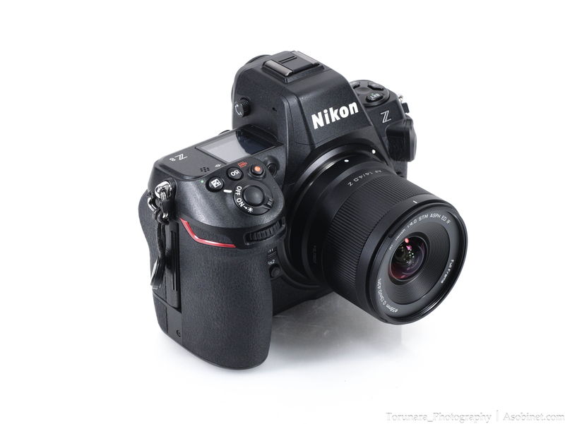 Z8に装着。小型軽量な14mm F4レンズらしく、片手持ちでも苦にならないサイズ・重量。Z50IIのようなAPS-Cボディと組み合わせても問題ありません。