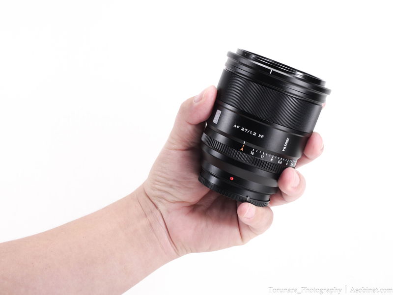 APS-C用レンズでは珍しい、27mmのF1.2大口径単焦点。