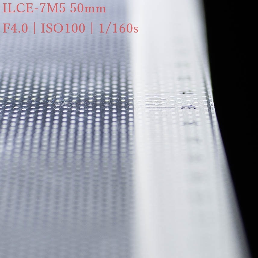 最近のレンズで目立つ像面湾曲を残したレンズは少ないものの、近距離では収差が増大して目立つ場合があります。と言っても、近距離でフラット平面の被写体を撮影する機会は少ないと思われ、像面湾曲が残っていたとしても心配する必要はありません。