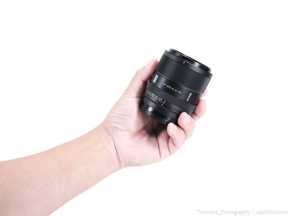 85mm F1.8・F2クラスのレンズとしては小型軽量。金属パーツや絞りリングを搭載していることを考えるとビルドクオリティ、操作性、携帯性のバランスが際立っています。
