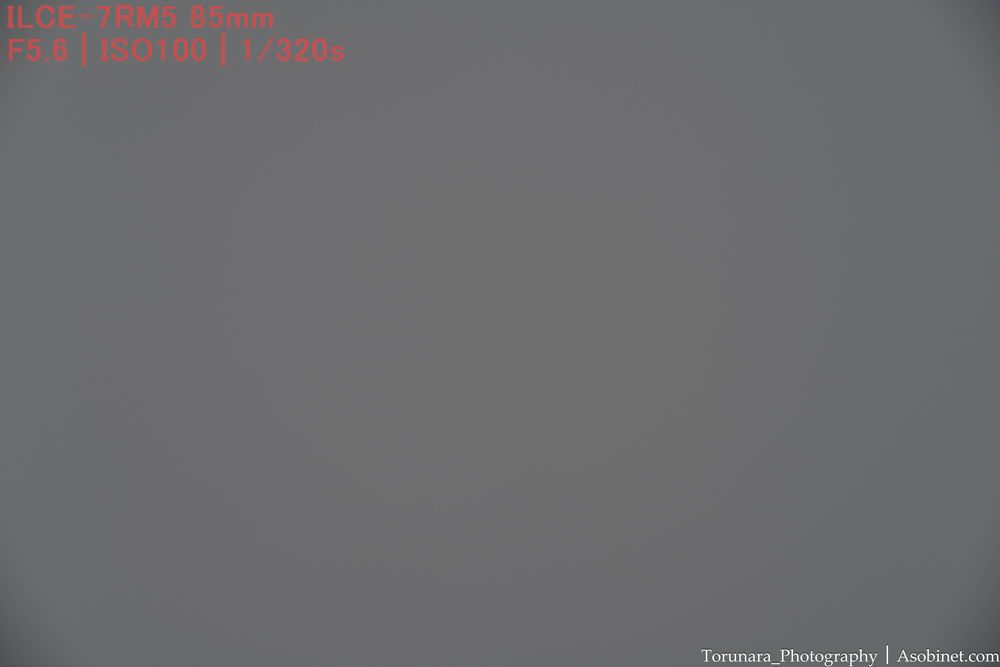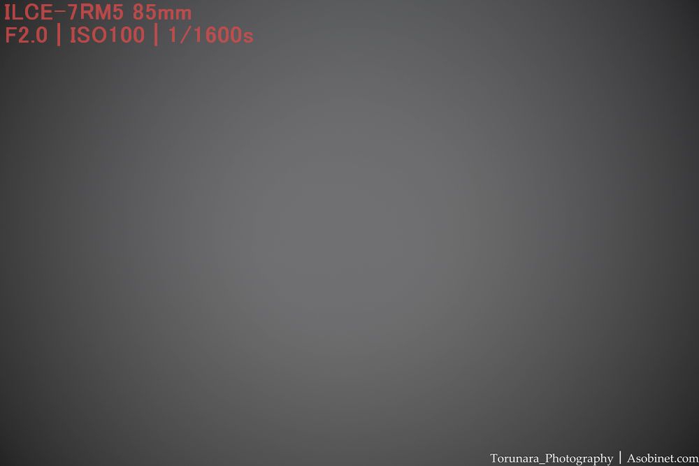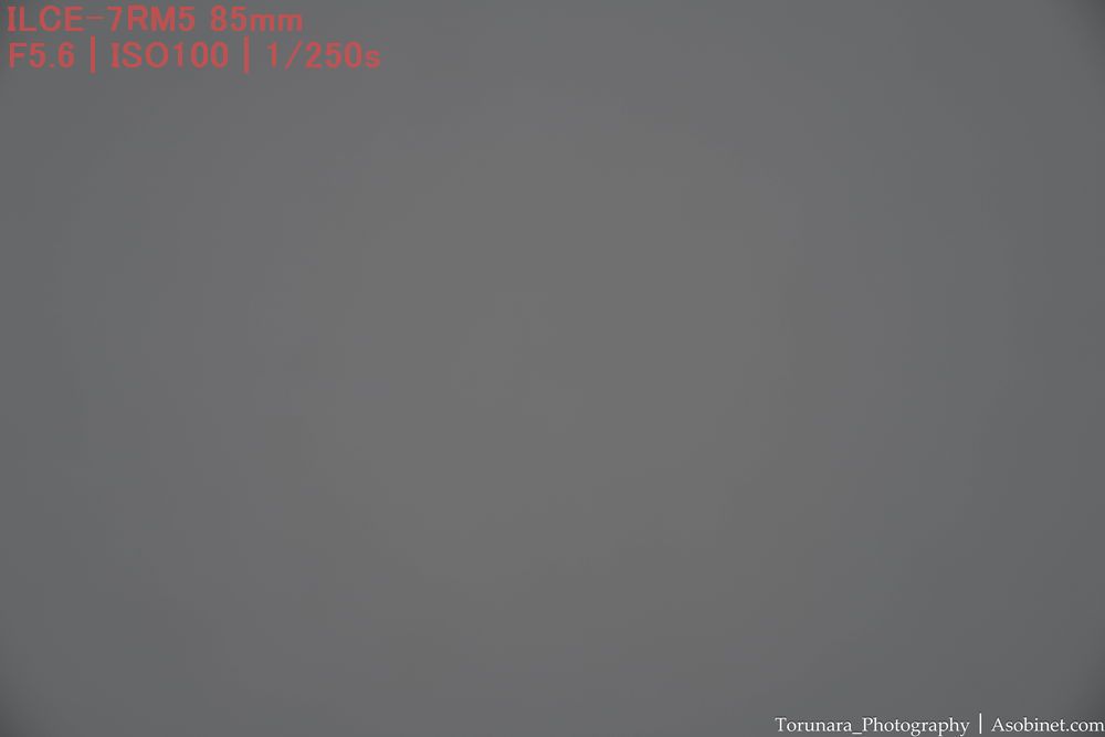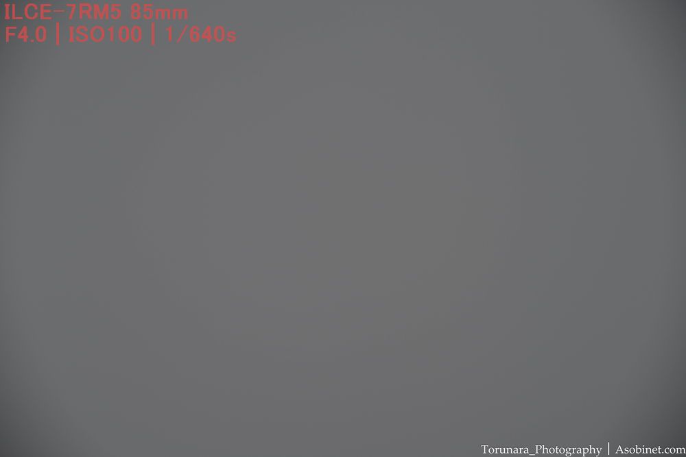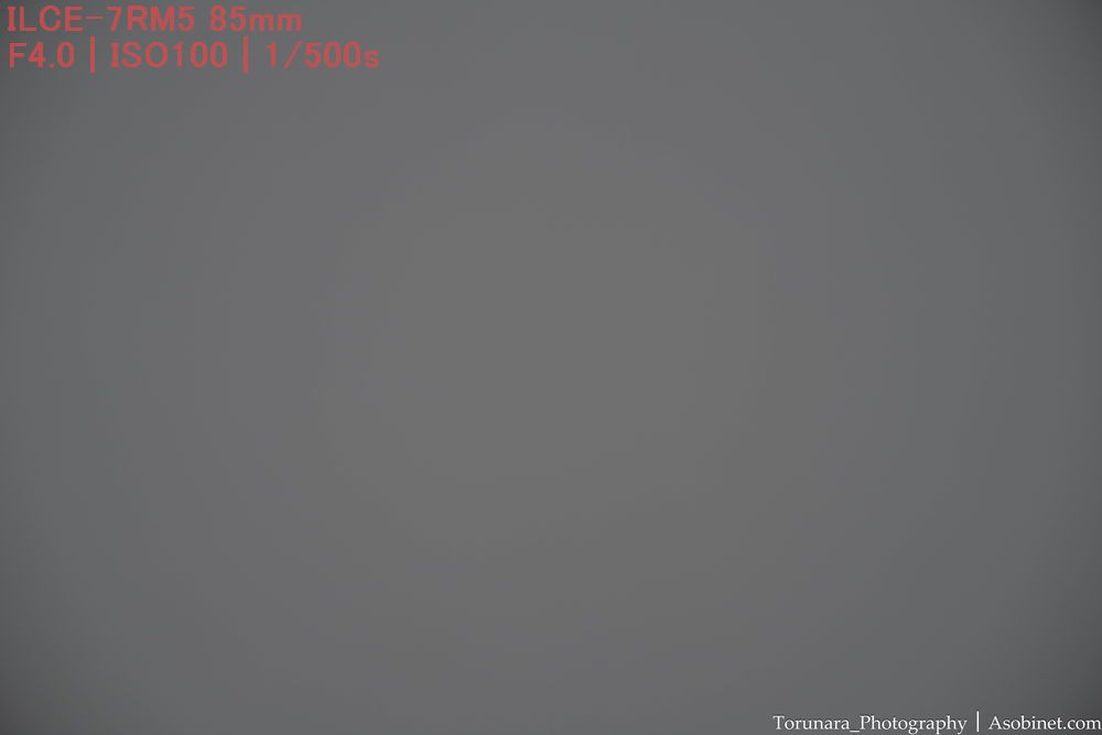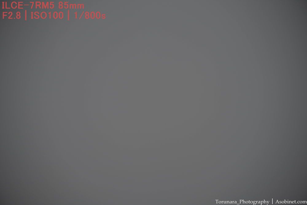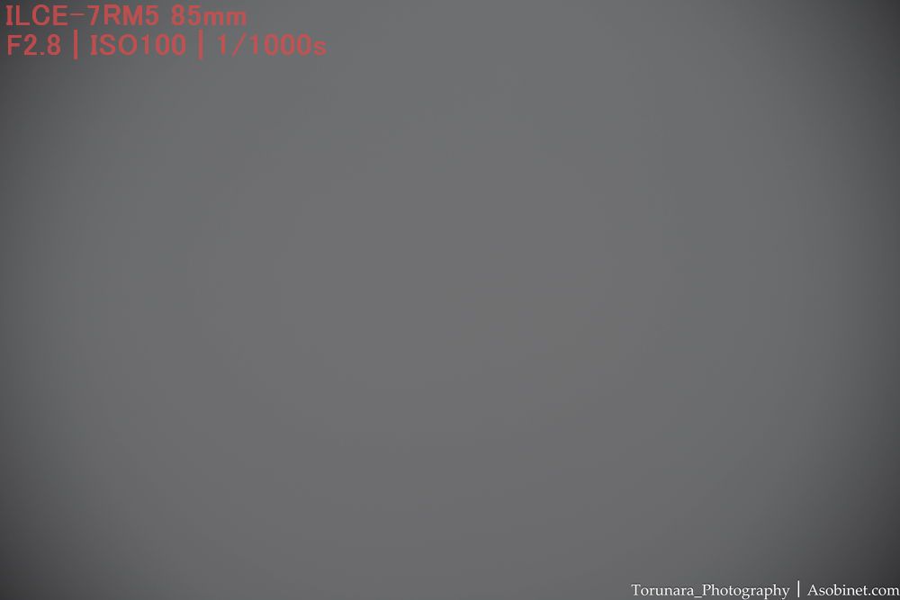 最短撮影距離と同程度。ただし、絞ったときに四隅の端に減光が少し残ります。小型軽量な85mm F2として過度に目立つわけではないものの、F2-2.8を使う場合は後処理で減光効果を補正したくなる場合がありそうです、