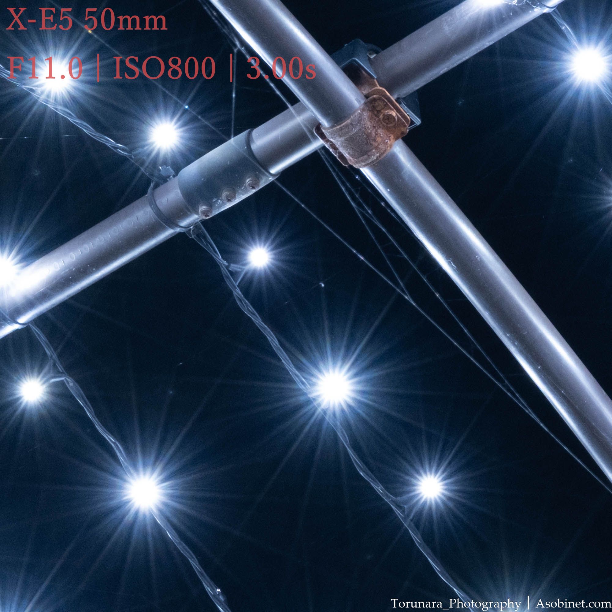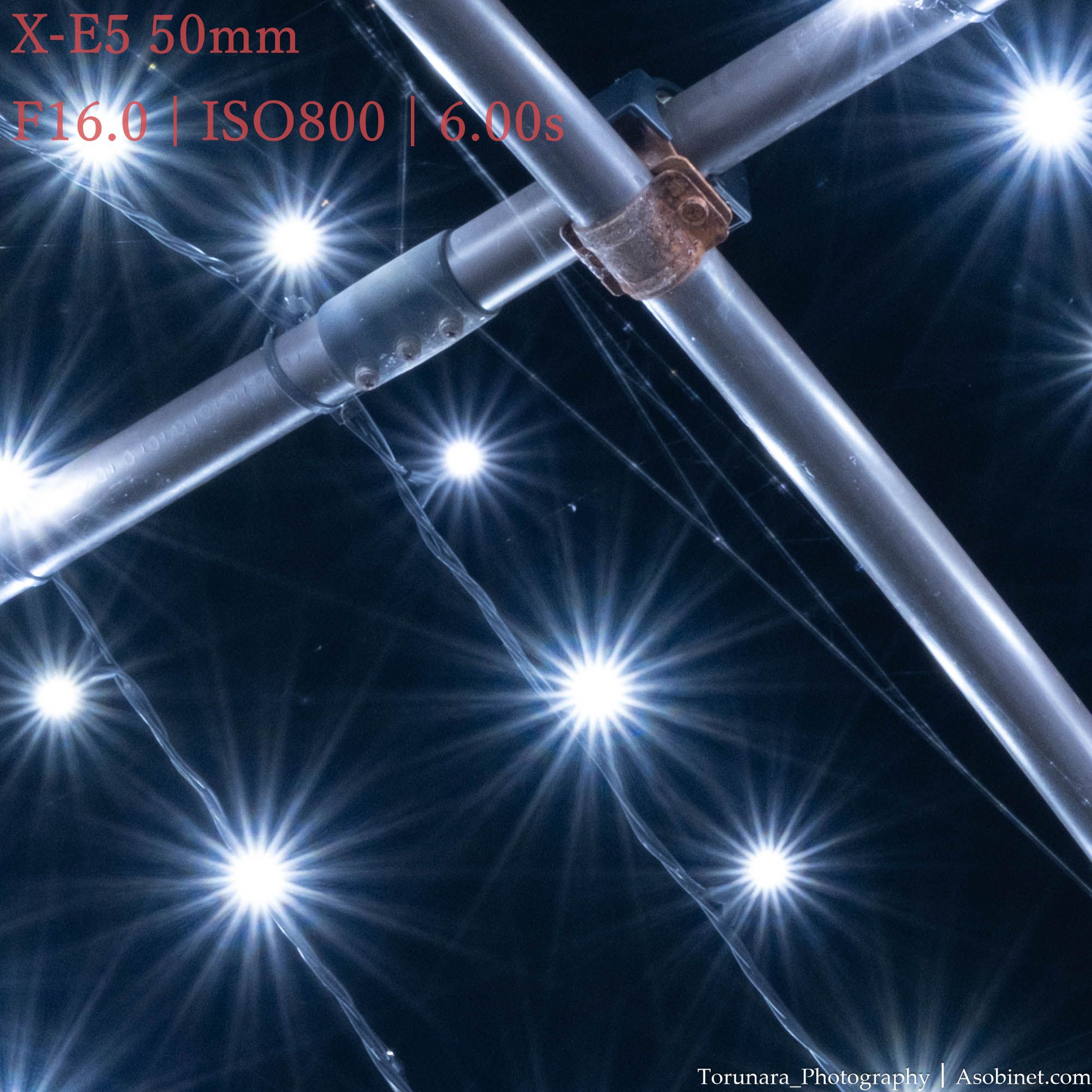最小絞りで綺麗な光条が発生します。ただし、回折の影響が強いので解像性能は大幅に低下します。バランスが取れる絞り値での光条はあまり期待できません。