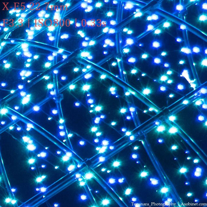 コマ収差・非点収差とは主にフレーム四隅で点像が点像として写らないこと。例えば、夜景の人工灯や星、イルミネーションなど。日中でも木漏れ日など、明るい点光源で影響を受ける場合あり。この問題は後処理が出来ないため、光学的に補正する必要あり。