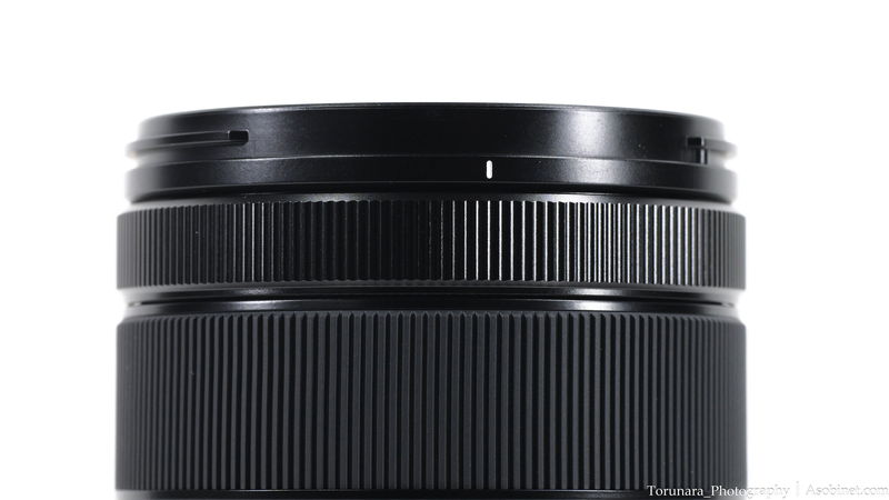 レンズ前面にはレンズ名やコーティングなどが白字でプリント。白字は光で反射しやすく、前面に装着したフィルターに写りこむ可能性があるので個人的には否定的。