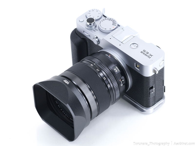レンズフードはXF33mmF1.4 R LM WRやXF23mmF1.4 R LM WRと互換性があります。市販の社外製レンズフードも使いまわすことが可能。コンパクトな角型フードで使うこともできます。