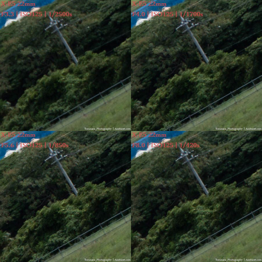絞り開放から安定していますが、絞りによる改善は期待できません。