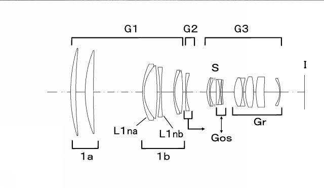 防振群Gosは結像光学系のブレによる像ぶれを軽減するように光軸と垂直な成分を含む方向に移動する。実施例1