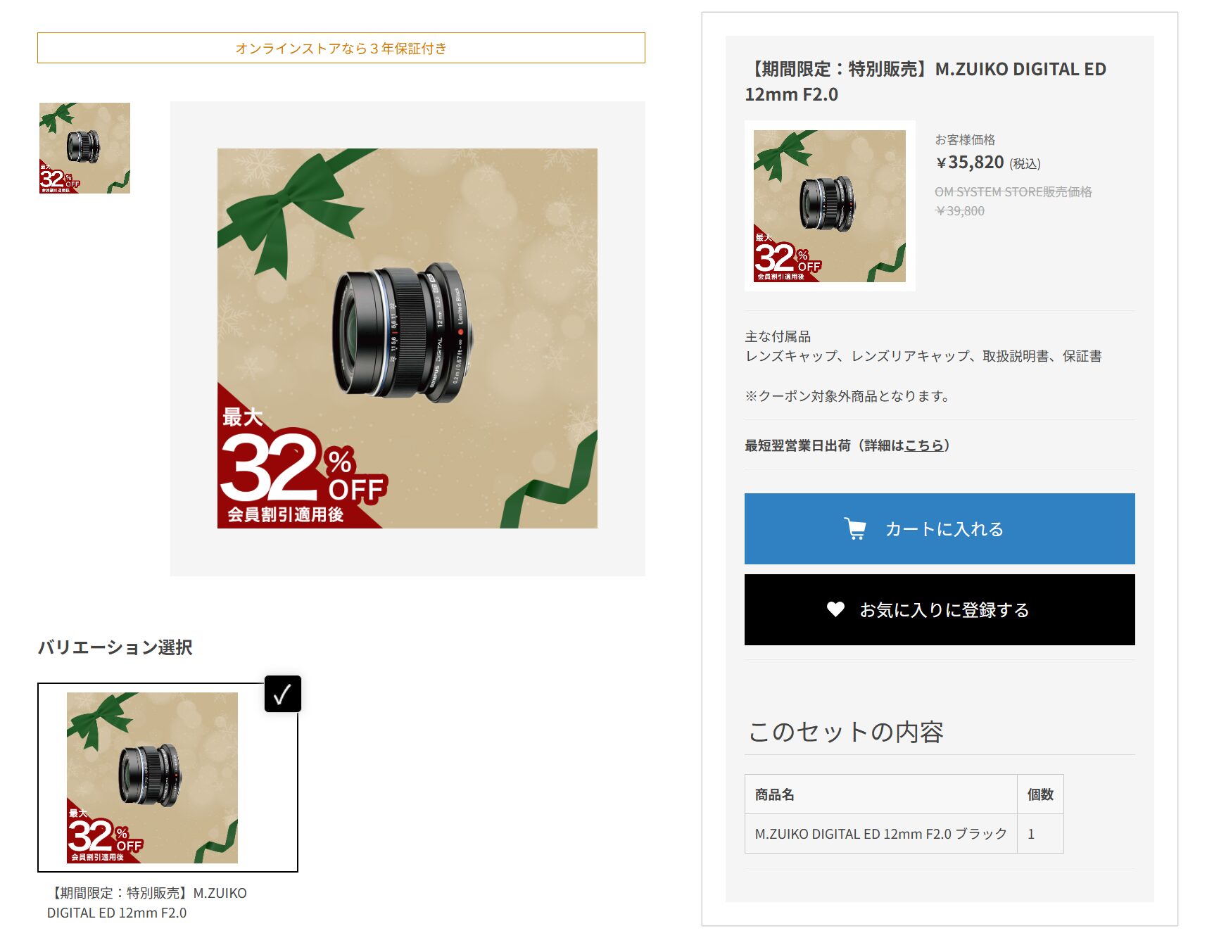 - M.ZUIKO DIGITAL ED 12mm F2.0が直販ストアで激安価格にて販売中 2025年12月18日