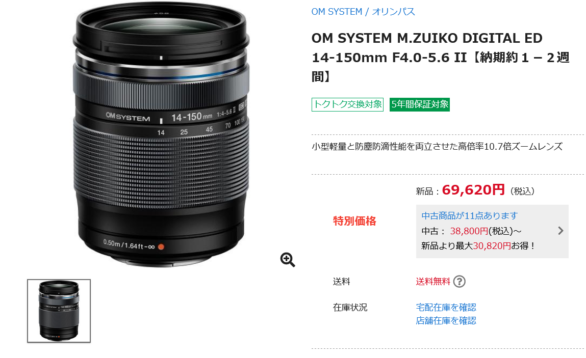 - OM-5 Mark II 14-150レンズキットがボディ単体よりも安い 2026年4月10日