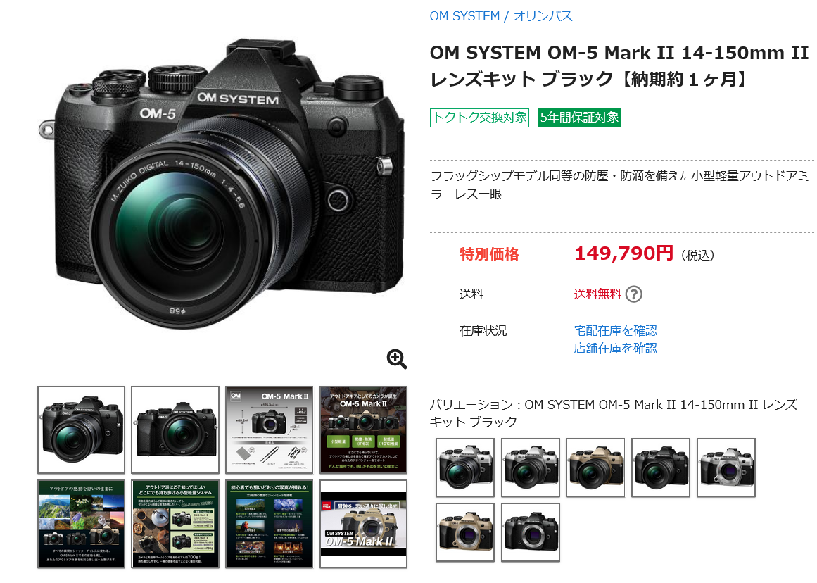 | OM SYSTEM OM-5 Mark II ブラック 14-150 II キット | |||