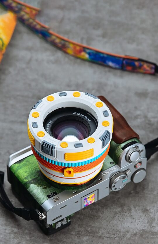 銘匠工房が新シリーズ「NEO」を発表。フルサイズ対応の50mm F1.8 AFレンズで、フォーカスリングや絞りリングを省略。空いたスペースにステッカーや3Dプリントパーツを取り付けることができる模様。