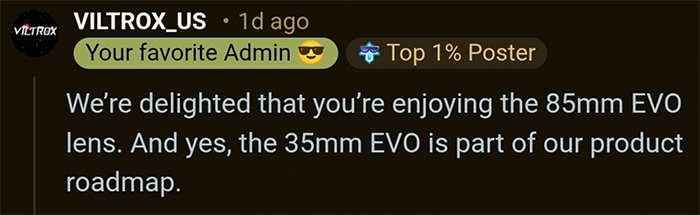RedditのチャットでViltroxは、以前リークされていた新型35mmと55mmレンズが間もなく発売されることを認めた。